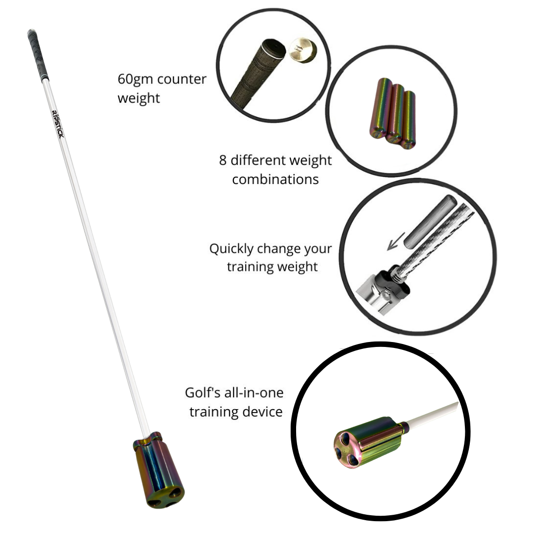 Featuring 3 interchangeable weights, plus an optional counterweight, Rypstick gives golfers 8 unique weighting combinations—without the need to swap out heads.